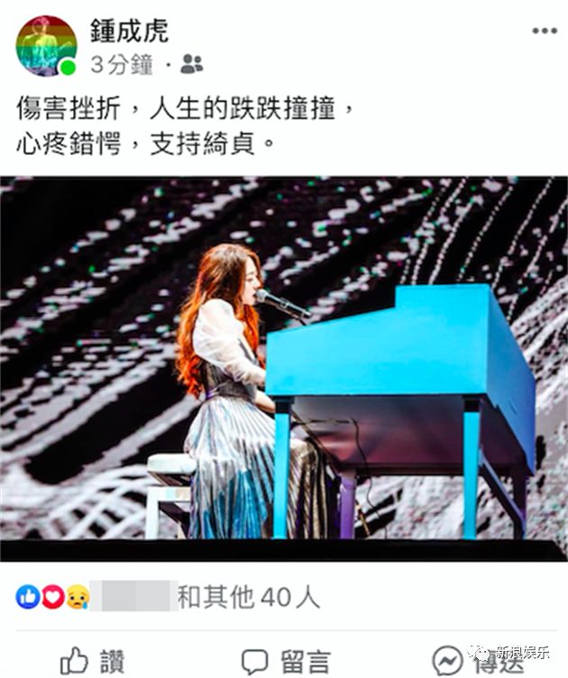 看陈绮贞之前交往18年的前男友钟成虎也出来为她发声。