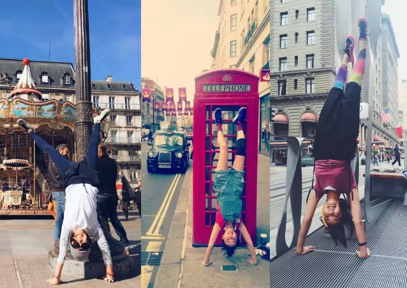 陈意涵是个倒立控,在世界各个地方倒立留照。