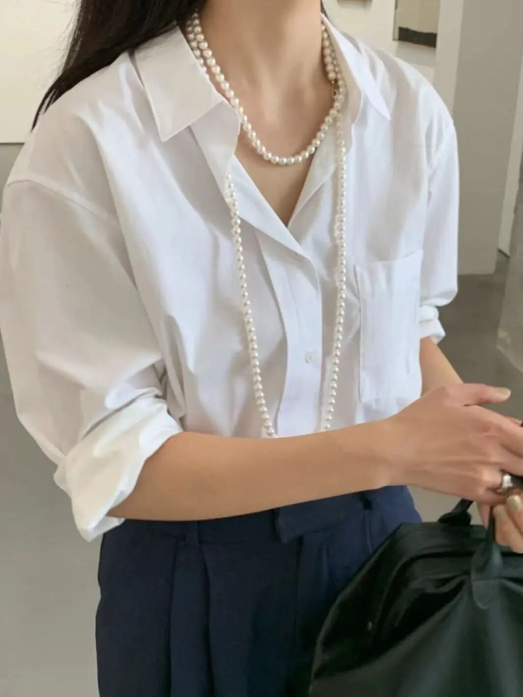 日常通勤穿穿T恤、卫衣时也别闲置了,加一条有量感的珍珠会比小米珠更加时髦!