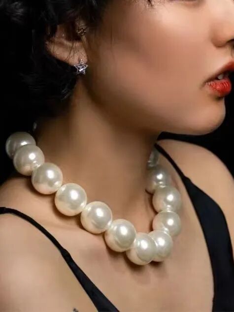 不过大尺寸的珍珠容易显得用力过猛,小尺寸的珍珠则比较轻盈,能够轻松修饰肩颈线。