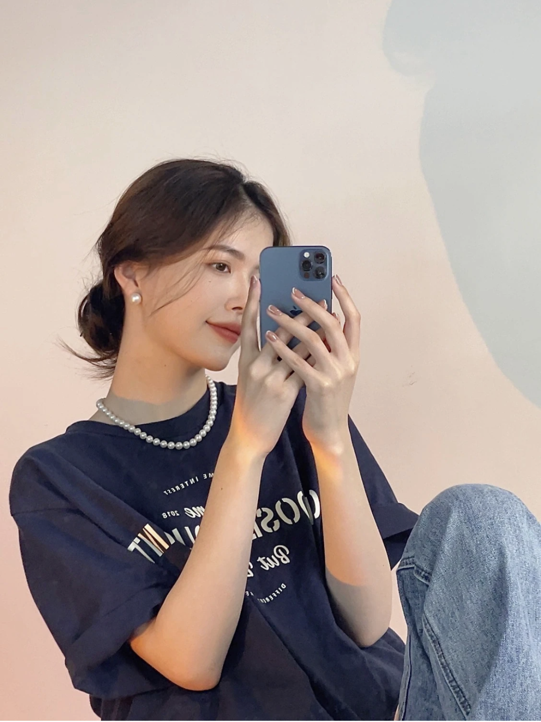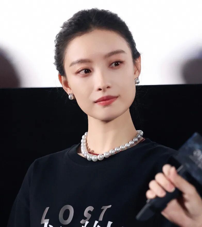 早前的电影宣传活动上,倪妮就用休闲T恤和澳白、金珠搭配出好多造型,而且每一套的珍珠都不重样!