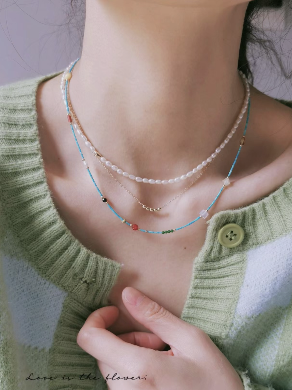 小米珠的好处就在于百搭!可以叠搭各种项链,彩色串珠、金属链、吊坠等等,每天都可以是不一样的风格。