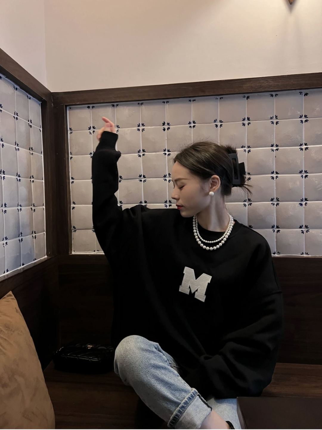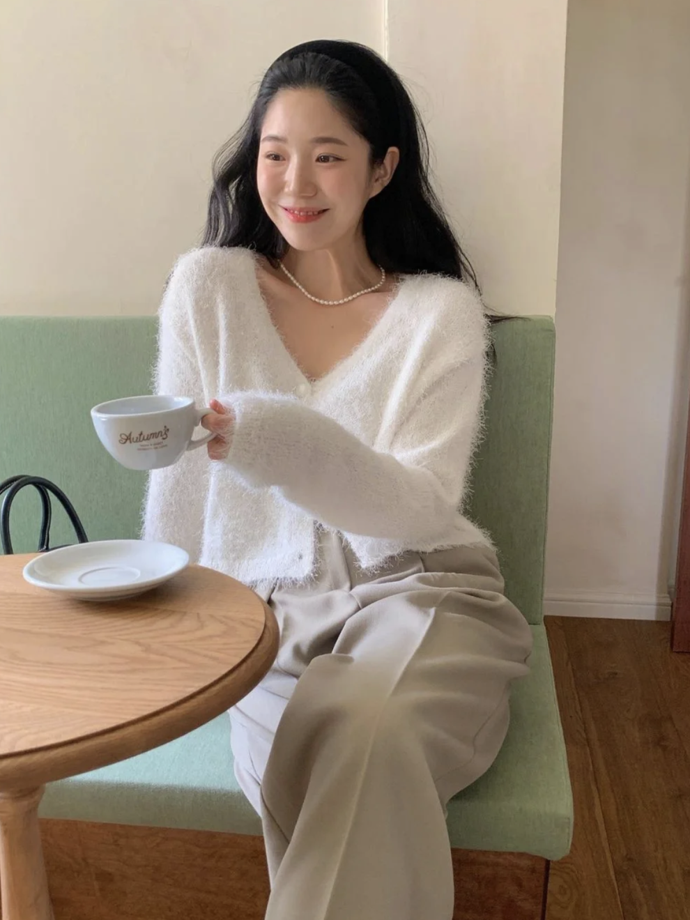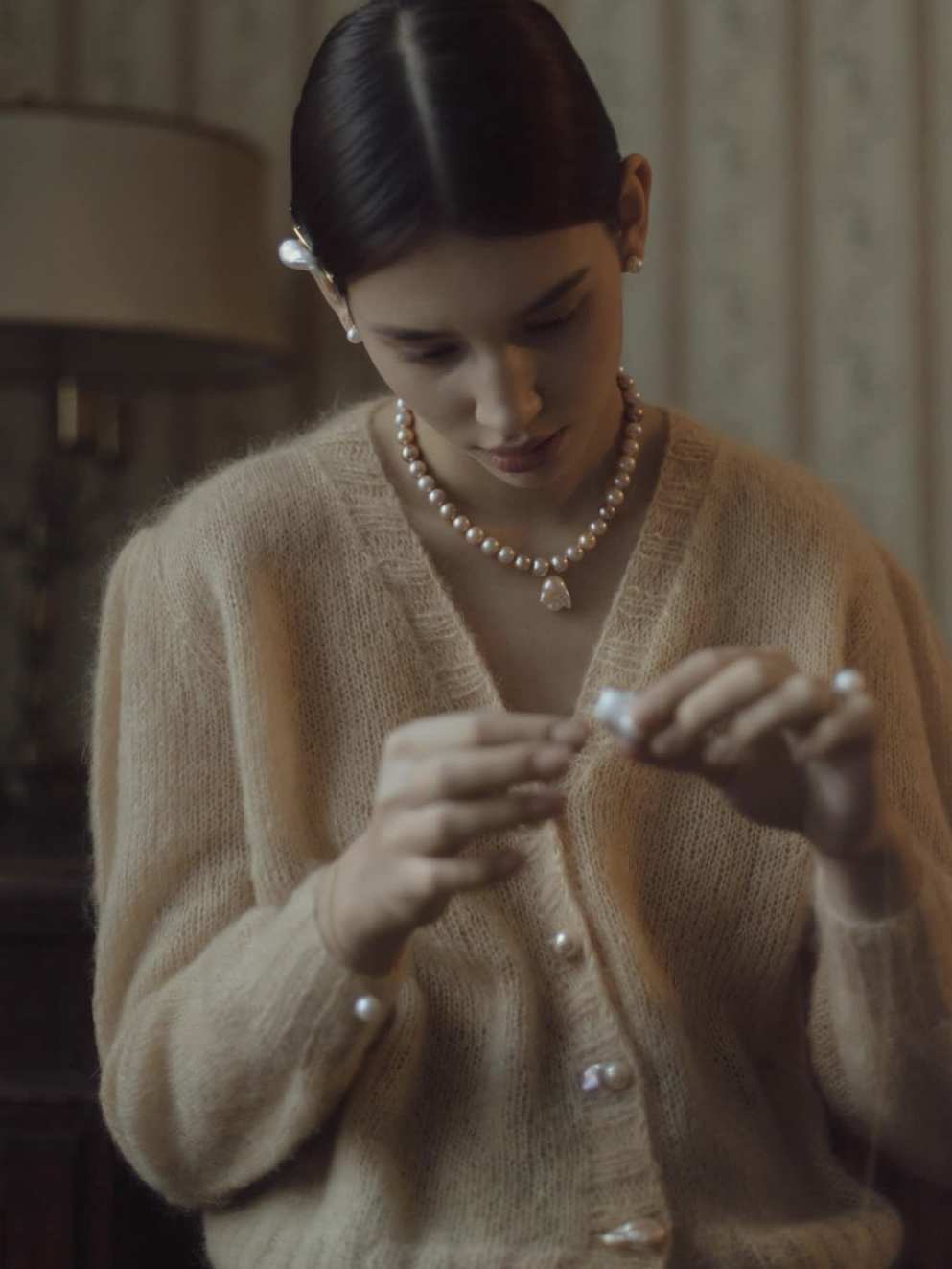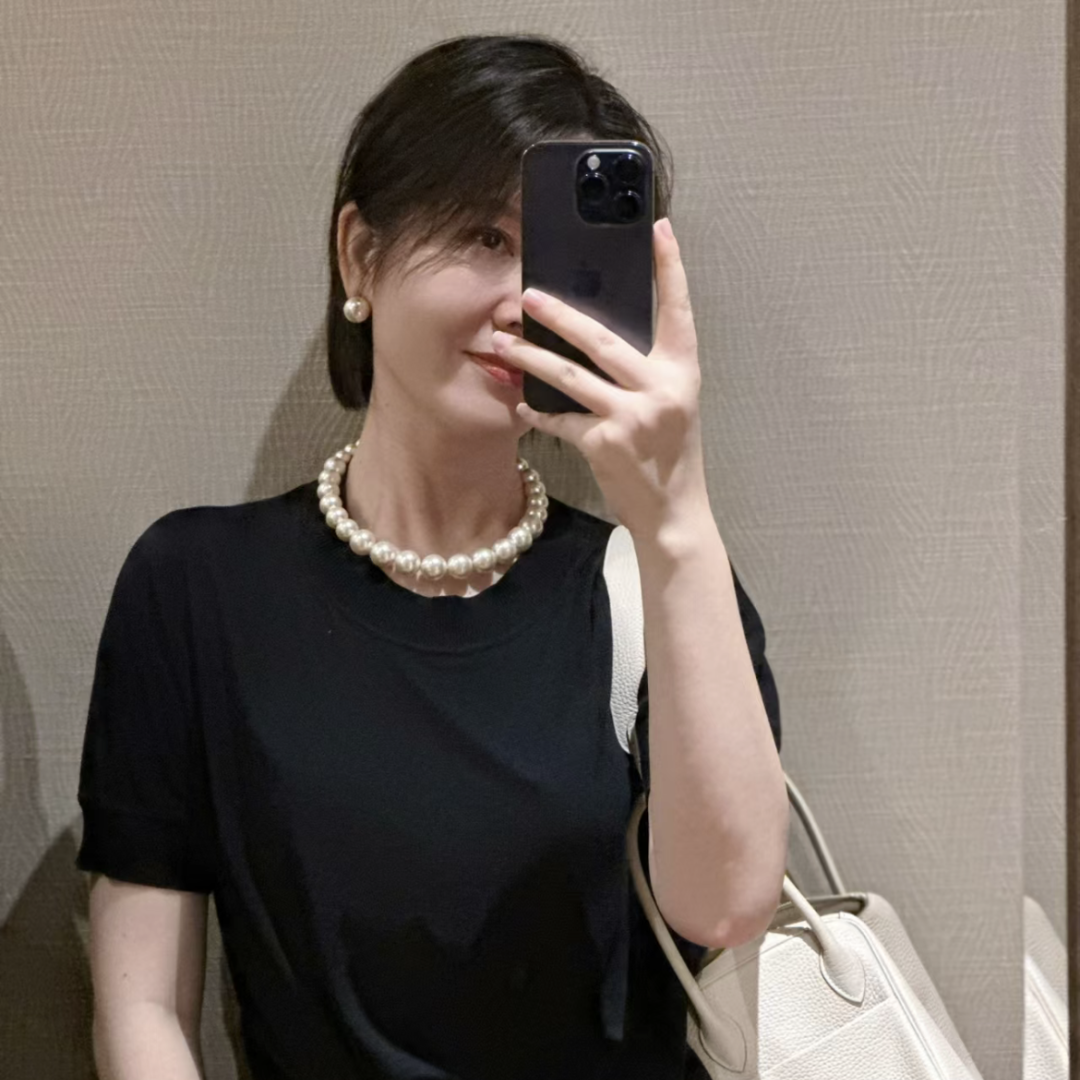 初秋的针织衫毛衣一类的衣物,戴上大一点的珍珠一下就有十足的复古感,温柔气质拉满。