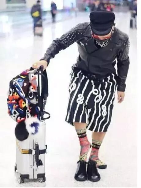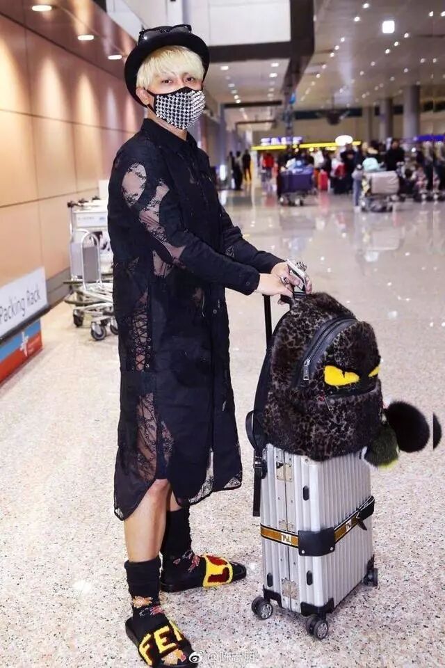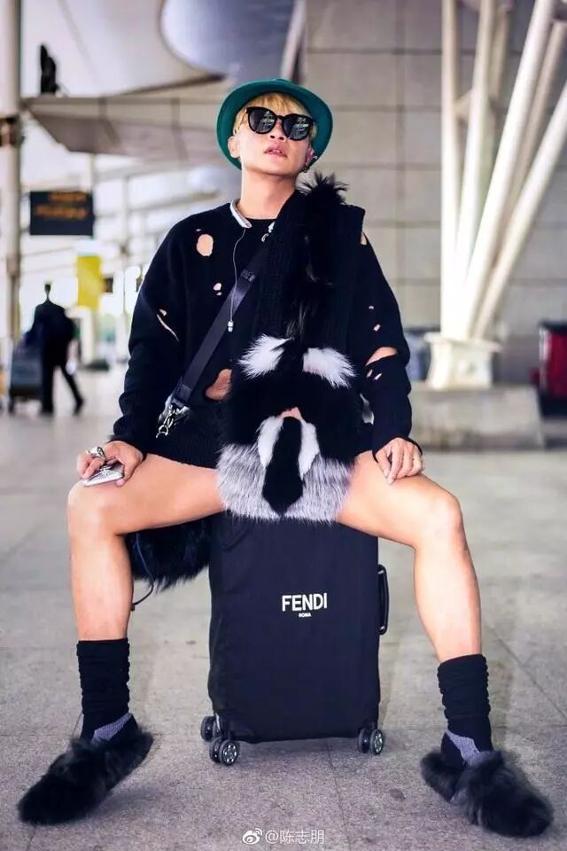 最近,陈志朋又一次以奇装异服亮相虹桥机场,