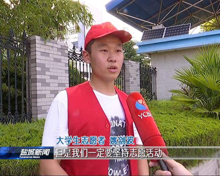 盐城师范学院海洋与生物工程学院团支部书记 何静:一方面锻炼我们大学生的一个专业的能力,全面提他们的敬业精神奉献精神,另一方面通过我们此次志愿服务活动,以“爱在社区,童做实事”这样一个主题,帮助我们的社区民众,能够做一些实事。