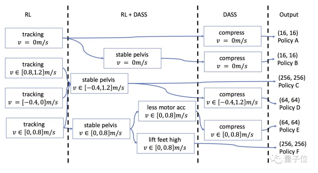 实际操作中,需要先训练几个初始策略,之后参考机器人的运动状态和需要达到的运动速度进行调整,这里只需要5~10k的小数据集就能实现变速行走策略。