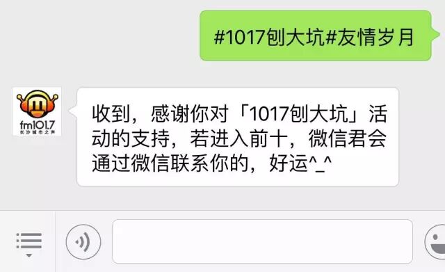 最后一个巨巨巨温馨提示 1.在微信后台回复#1017刨大坑#+你的答案 而不是在文章底下留言(错误) 2.请回复#1017刨大坑#+你的答案 比如“#1017刨大坑#+友情岁月” 单独回复歌曲名微信君是搜索不到的噢(错误) 收到以下回复才算成功噢 ▼ 每周的刨大坑在周三下午6:30准点发送 记得关注噢!