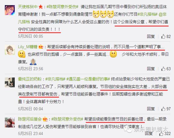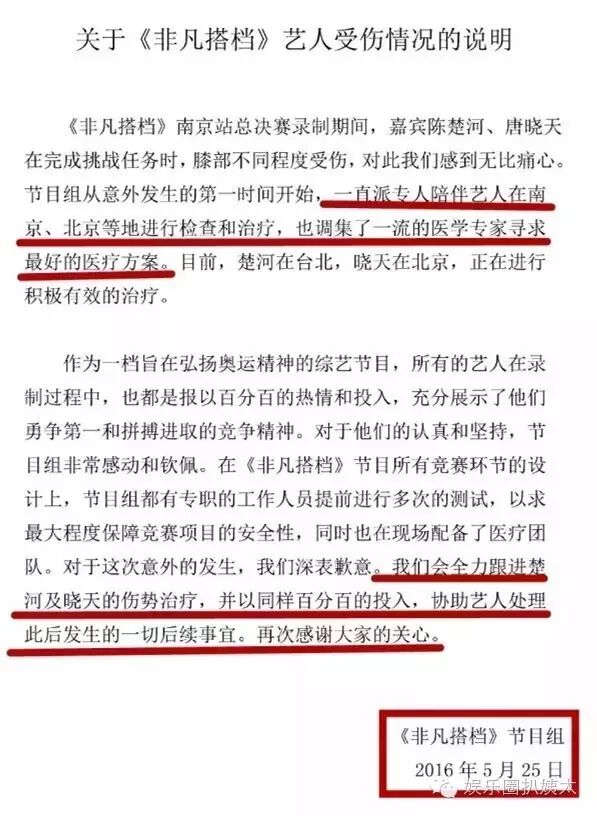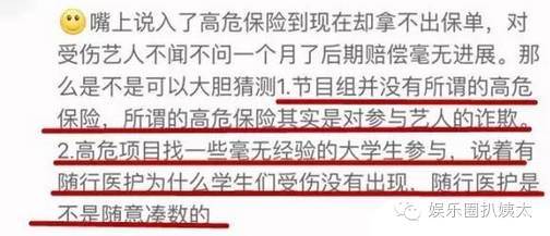然后就是各种明星受伤,关键不止明星受伤,参加非凡搭档游戏测试的学生志愿者也受伤之后没人管。