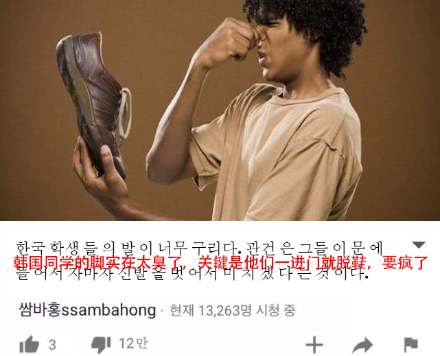前段时间,一位在韩国留学的中国学生,在YouTube上吐槽了一句:“韩国同学的脚也太臭了吧!还一进门就脱鞋,要疯了~”