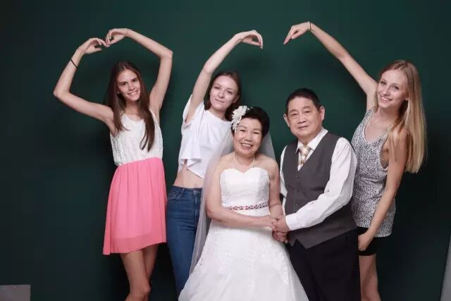 2014年7月,父母在我的陪同下在北京拍摄了金婚照片。这是母亲第一次穿上婚纱拍照,他们非常享受拍照的每一个片刻。