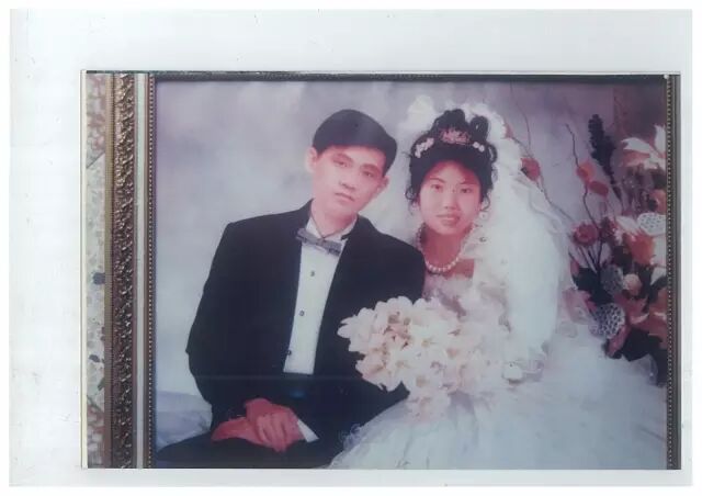 这是他们的结婚照。没有婚纱,也没有婚戒。就这么简朴。