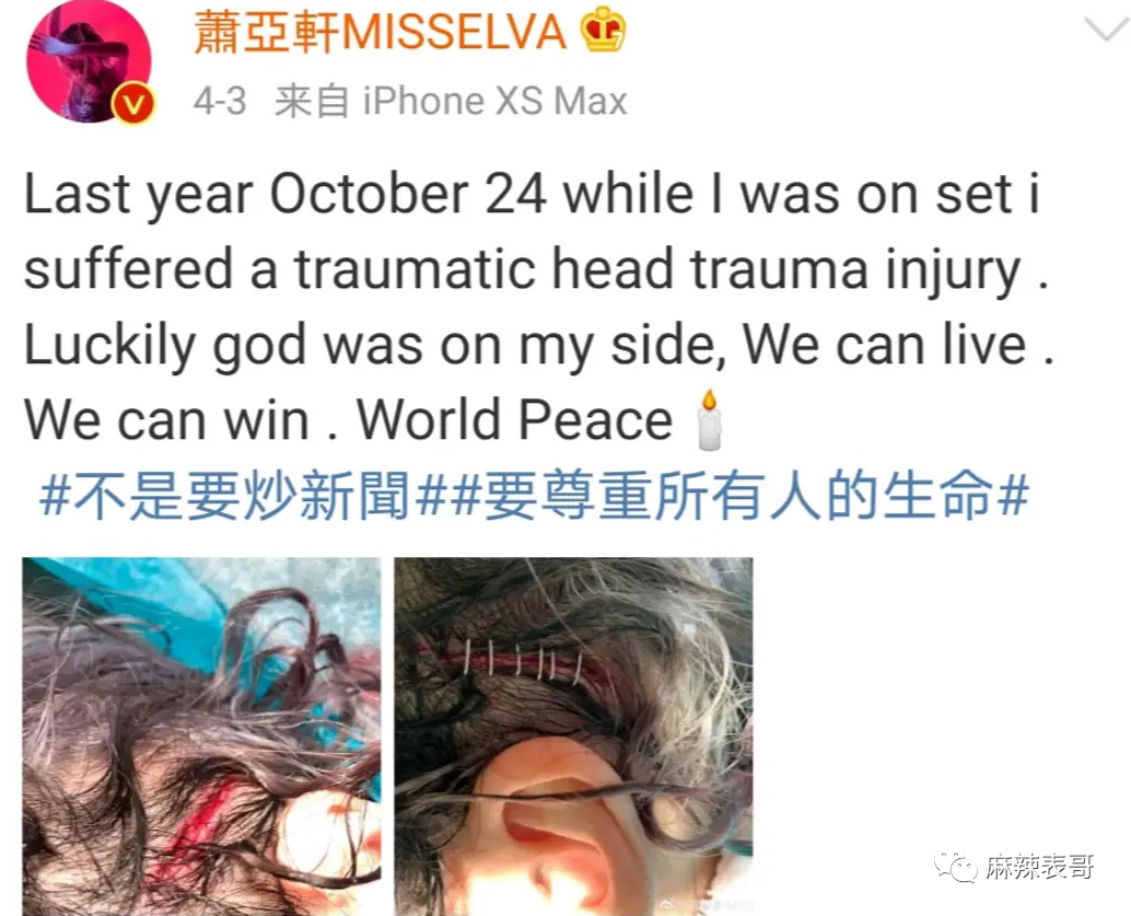 紧接着,头部受伤,缝了好几针,伤口看着都疼。