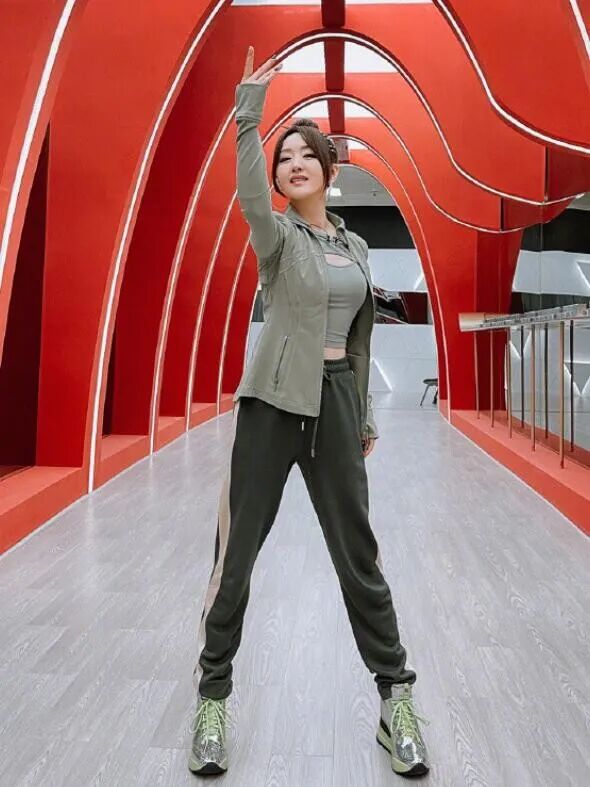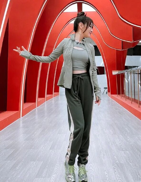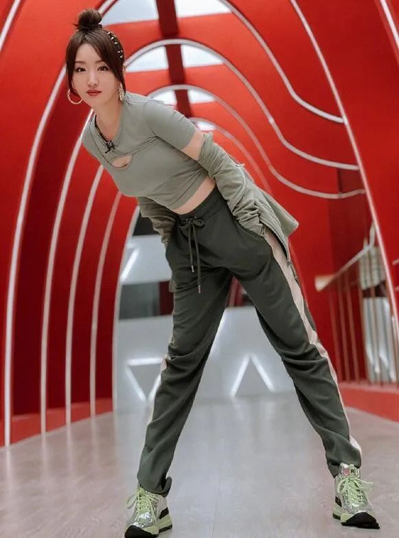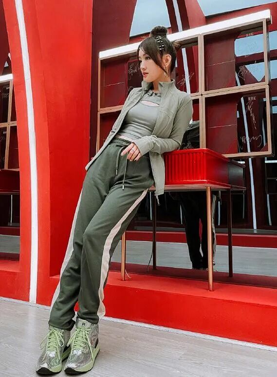 大家在尝试新的风格,或者是混搭、叠搭这种驾驭难度较高的造型时,为了避免造型显得突兀,大家就可以像杨钰莹一样通过同色搭配来提升造型协调度入手。这身运动风造型整体运用了绿色系,豆沙绿上衣+墨绿色运动裤的搭配属于同色不同深浅,这样搭配看起来既和谐养眼,又能因为颜色间的深浅变化而呈现出了自然的层次变化,显得利落又帅气。