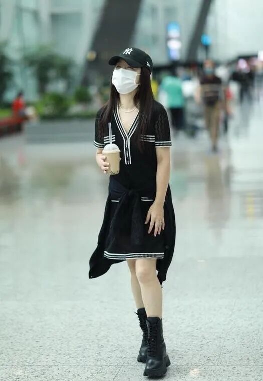 杨钰莹在时尚表现这方面很少让人失望,现身机场的她穿着黑色蕾丝裙搭配同色马丁靴,神秘深邃的黑色为原本女人味十足的蕾丝裙又增添了几分酷帅劲儿。系带马丁靴本来就是酷女孩的必备单品,和黑色蕾丝裙搭配在一起更能呈现出一种又酷又美的多元魅力。