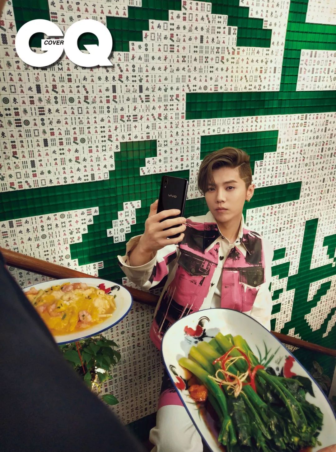 鹿晗心情不错,在坐下来接受访问之前,他与离开的化妆师、朋友亲切地告别,甚至拿起手机与周围的人自拍,亲身示范了“AI 智慧拍照,照亮你的美”。