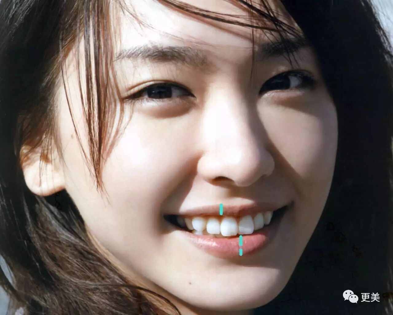 新垣结衣几乎每张微笑的图片,上唇都非常平,而且很薄,近乎看不到上唇的平面
