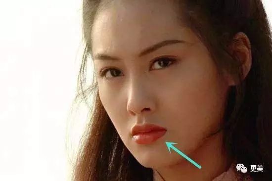 朱茵也是很典型的例子。朱茵不笑的时候,上唇就略薄于下唇,但饱满度非常高