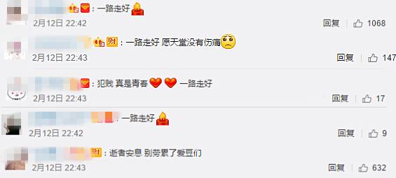 看到覃桢去世的消息,网友们也纷纷在下面表示了哀悼。
