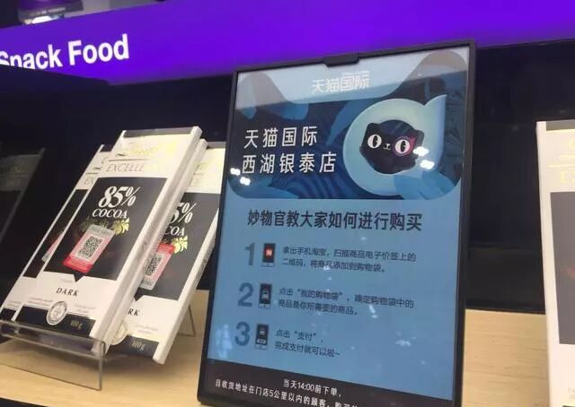 4月20日,杭州西湖银泰城内天猫国际首家实体店对外试营业。300平米的“小店”容纳了来自70多个国家的1100多个海外品牌商品,包括美妆、保健品、食品、酒水等多个类目。在精选全球商品的同时,天猫国际实体店还结合了周边消费大数据,通过定期反馈,可以得知消费者的偏好、需求,从而更新商品种类,更好地进行服务。由于是跨境商品,消费者只需通过店内的自助查询屏扫描商品条码,就能查看中文版商品介绍,同时还能参考系统精选的购物达人评价。多方参考比对,再加上现场试用,心里的石头才能彻底落地。选中喜欢的商品后,消费者完全不用动手,因为天猫国际会主动送货上门,让逛街更轻松无忧。