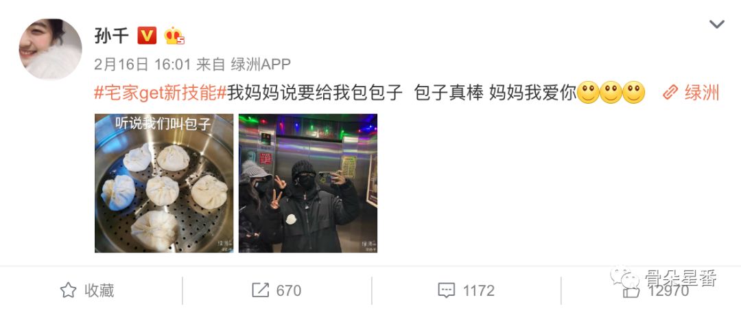 受到疫情的影响,最近这段时间她也只能宅在家里。打发时间的方式,和平时一样,画个画、拼拼乐高、做做手工。前几天,她在微博发了妈妈做的包子,她说“围观”不会做饭的妈妈下厨,是她的新乐趣所在。