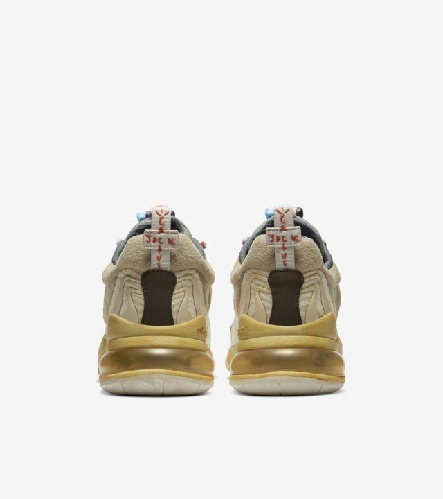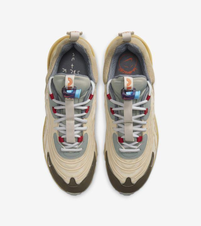 Nike x Travis Scott Air Max 270 “Cactus Trails”的配色灵感来源于Travis Scott对于复古风格的钟爱。该鞋款鞋面运用波浪形纹理设计,犹如中底内嵌凹槽的奇妙延伸;沿用复古色调的鞋带锁扣则固定在鞋舌拉片处;脚踝处的针织材质则带来了些许柔软的毛绒感;中底采用了Nike React泡棉材质并且后跟搭载了Max Air 270缓震配置;此外鞋跟和鞋垫以“Cactus Jack”标志点缀。