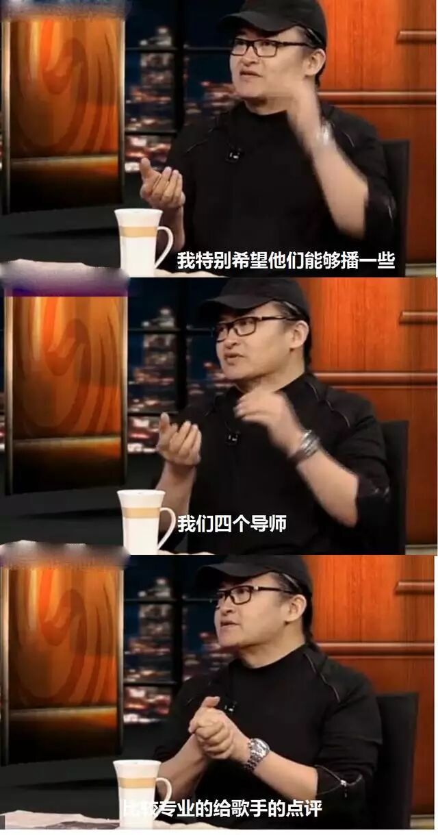节目现场,导师们都像打了鸡血一样激动,你以为是真的?其实那都是剪辑出来的效果,剪辑把那些激动时刻都堆一起了,所以看着就更激动。其实刘欢也曾跟节目组抗议过,说希望不要弄得那么嗨,希望多放点专业点评。不过因为这样就不够吸引眼球了,所以节目组置之不理。