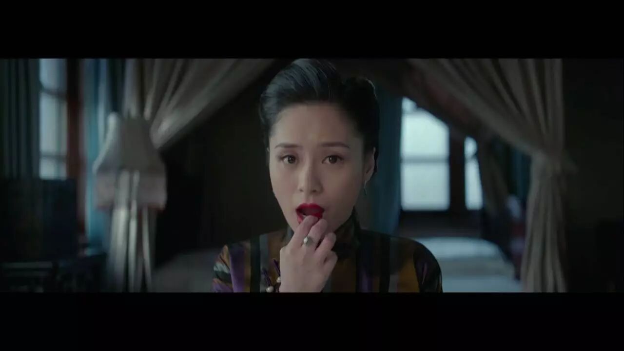 钟欣桐饰演的杜先生的第五房姨太在前往杀死杜先生的汉奸二哥之前,为自己画上的最精致的红妆。