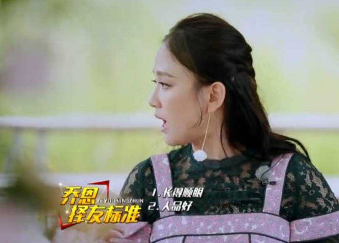 陈乔恩则是延续了自己大大咧咧的个性,上节目毫不避讳地显露“剩女本色”,一边说着自己的择偶标准,一边幻想是不是明年就能把婚结了。