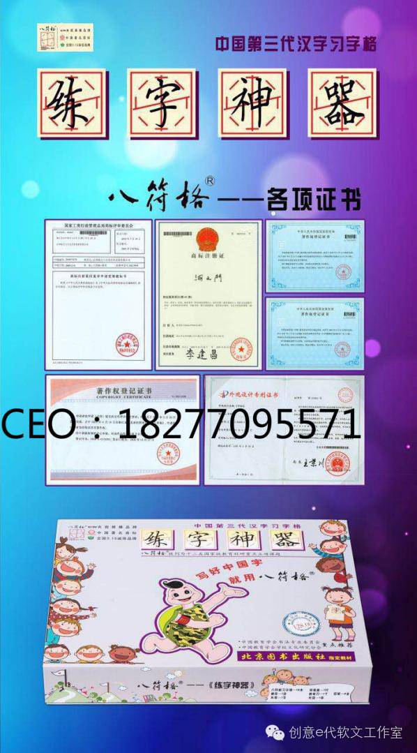 而如果能有更多人因为八符格练字神器找到属于自己的创业之路,更是好事一桩!有句话说得好,当你的现状无法满足你的野心的时候,就是你应该寻找改变的时候!八符格八符格怎么代理?无论是出于让更多孩子练得一手好字之心态,还是帮助更多人创造创业平台的信念,八符格闺蜜团队(微信:18277095571)都接纳更多的新人伙伴,一起将八符格练字神器带给更多的孩子,也一起成就自己的财富人生!