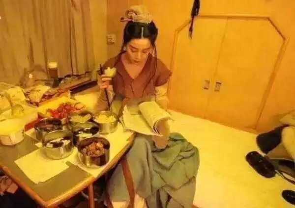 《琅琊榜》的剧组也是超级奢侈啊,感觉就是在饭店吃饭的配制啊。旁边的工作人员都吃得超级香的,我胡在还一边吃饭一遍看台词,真的是超级敬业!