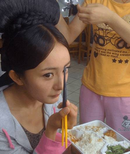 杨幂这张照片太经典,虽然看不出来吃的是什么,不过从大幂幂的表情可以猜测,肯定不是什么好吃的。