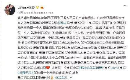因为在第一轮黄子韬和罗志祥队BATTLE时,黄子韬队的阿酸失误,拥有投票权的韩庚说了一句“失误就是失误”,把票投给了罗志祥队。