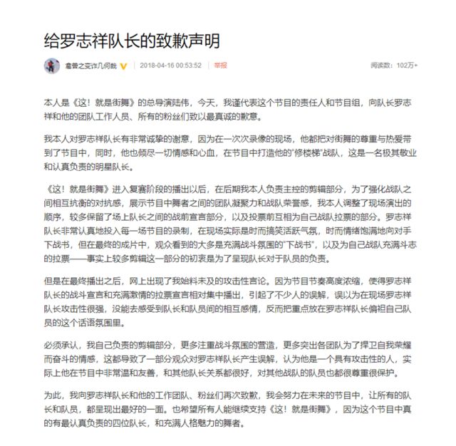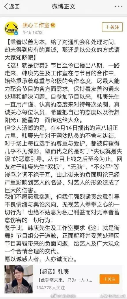 韩庚虽然没有发声,但导演出来道歉了,直接给罗志祥和韩庚写了两封道歉信。