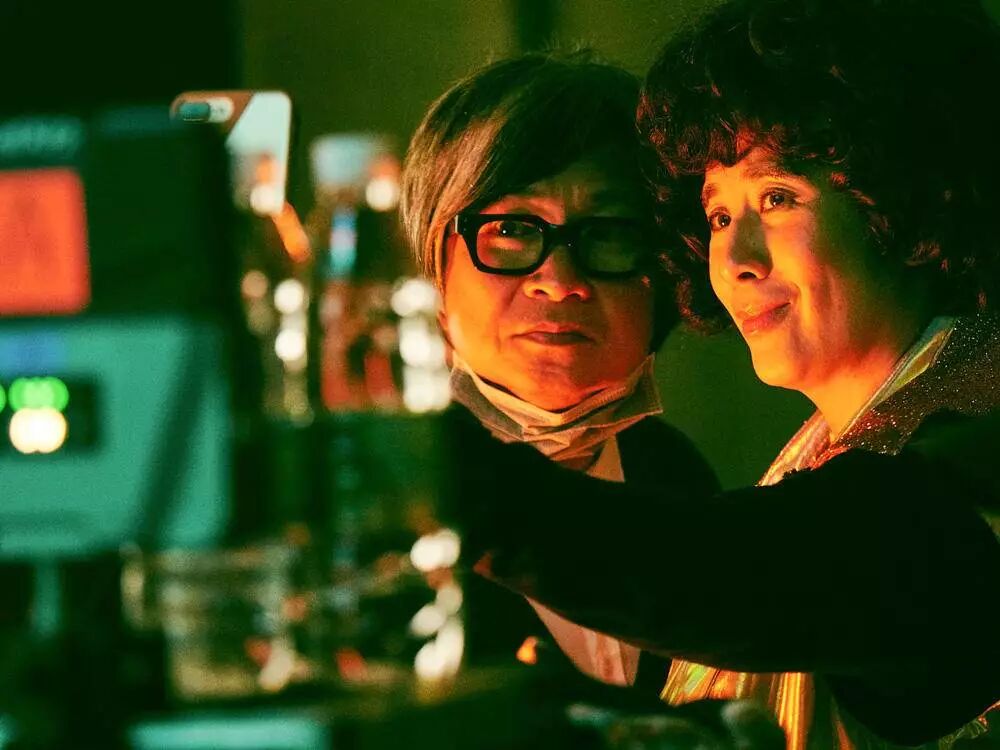 陈可辛:好看啊。我们一直推她去得更夸张一点。我说你就放开来演,完全放开。当时也有契机的。2002年,当时香港挺低迷的,整个城市。当时在香港,所有老的歌星都出来开演唱会。98、99年有了电脑下载,已经没人买唱片了,所有唱片公司倒闭了,唯一还能生存的,就是出老唱片。我觉得香港已经没有新的东西,只能怀缅过去。所以这个时候香港是很低迷的。97之后还死了几个很有代表性的人,罗文死了......突然间香港的光辉好像已经过去了,当然现在可能更低迷,但是当时是第一次觉得香港真的低迷。所以我们完全是为了香港观众,不是为了全球,只是为了当时的香港。我们连海报都是,一个吹气的洋娃娃,阿金为大家打打气。是有一点点这样的想法的。