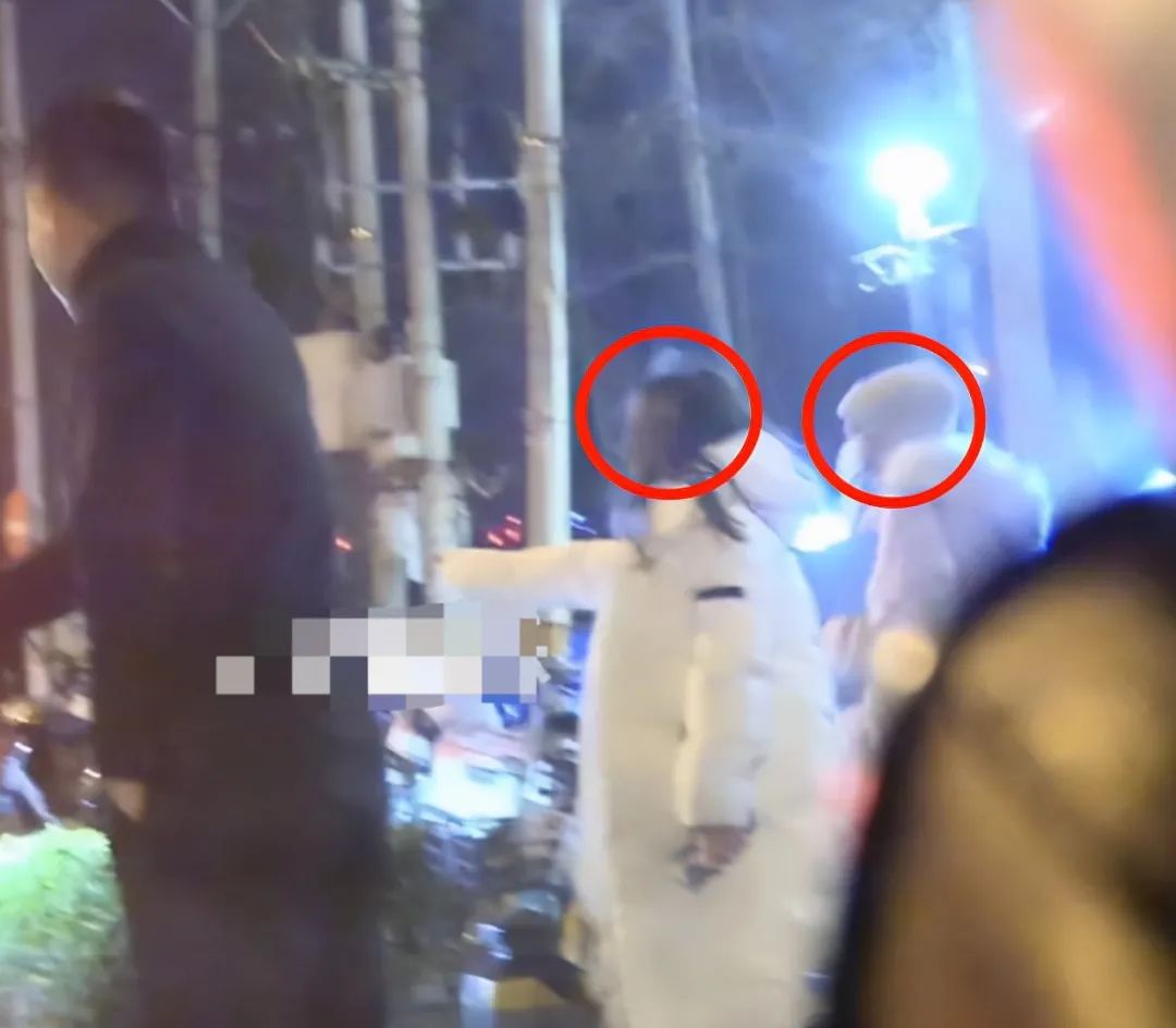 最后,两人站在光线十分明亮的马路边,准备上车离开。在灯光的照射下,穿着厚厚白羽绒服的女儿王紫嫣披散着凌乱的头发一手拿着手机,一手指着马路上,而后来才缓缓跟上来的妈妈刘涛双手插口袋,丝毫不带犹豫地走向车边。