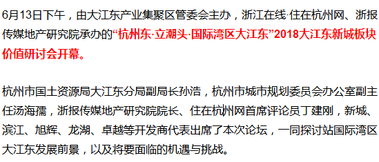 “如果杭州进入国家中心城市,需要一个国家新区,那就只有大江东。”在本次论坛上,杭州市国土资源局大江东分局副局长孙浩表示。