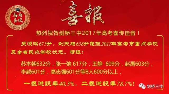 热烈祝贺剑桥三中2017年高考喜传佳音