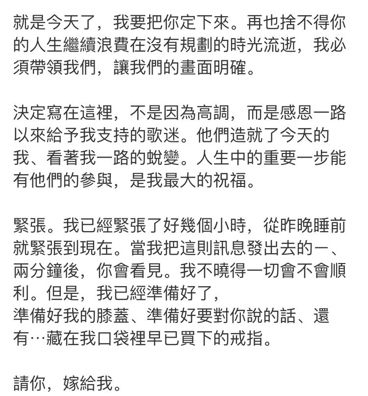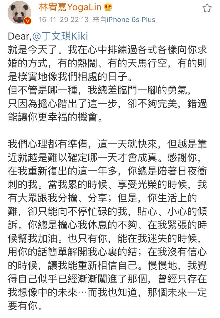 就像 2016 年 11 月29 日那天,他发微博向丁文琪求婚: