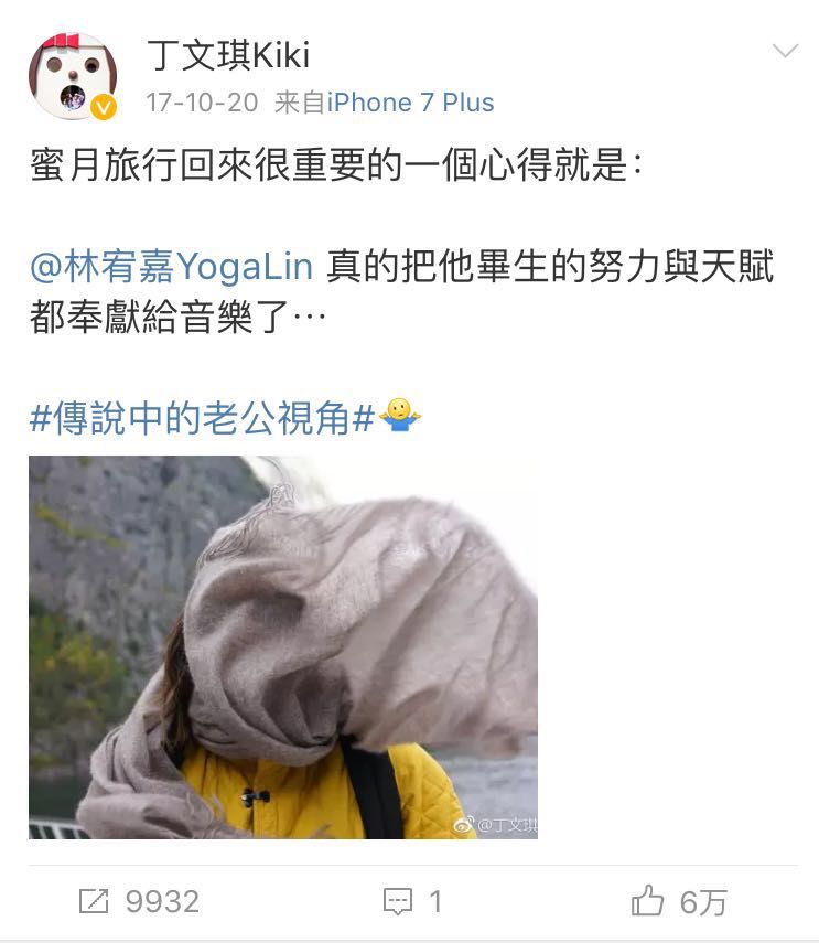 ▽ 当丁文琪陷入第三者风波时,林宥嘉第一时间发长文微博力挺女友!