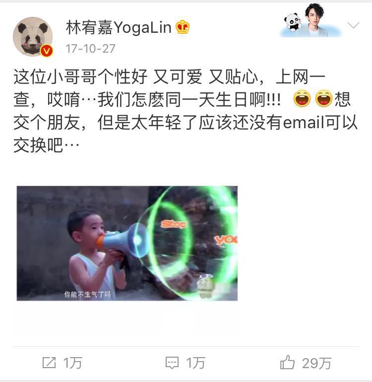 翻他的微博,就会发现他跟以前不一样了。现在的他除了帅,还有俏皮,可爱和阳光。
