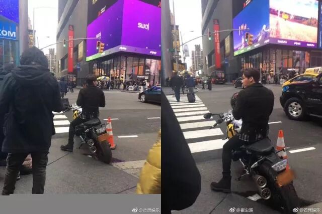 如果你在纽约,你可能在路边偶遇骑机车的大长腿李易峰。