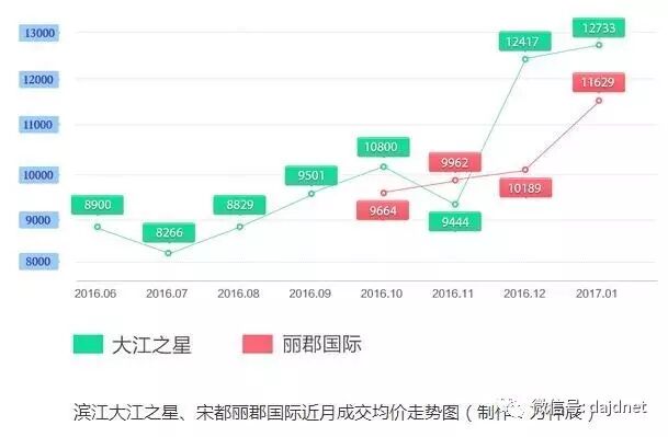 现在这个时间段,你无论走进哪个在售卖的楼盘售楼部,都感觉到大江东也已经迈入了“卖方时代”。销售员的漫不经心,休息的休息,玩手机的玩手机。并且价格都已经在万元以上。大江之星今年1月成交了52套,成交均价12733元/㎡,对比首期房源,价格涨幅超过4成。1月份时,丽郡国际的成交均价已经达到了11629元/㎡,对比首期房源,价格涨幅达到了20%。