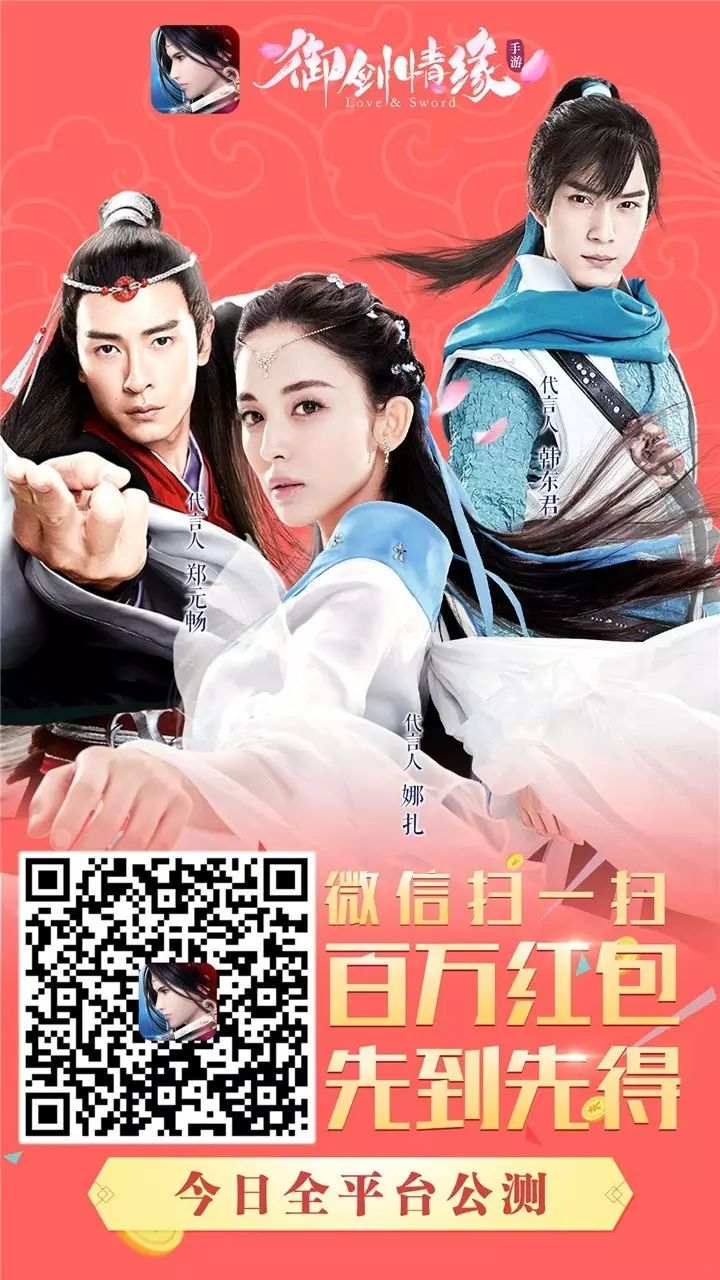 7月13日起,《仙剑云之凡》三大主角郑元畅、韩东君、娜扎将携百万现金红包,助阵《御剑情缘》手游公测!只要玩家关注《御剑情缘》手游官方微信,即有机会获得公测现金奖励,先到先得!