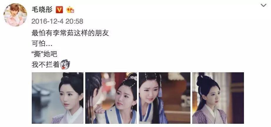 经常发微博吐槽“李常茹”的毛晓彤