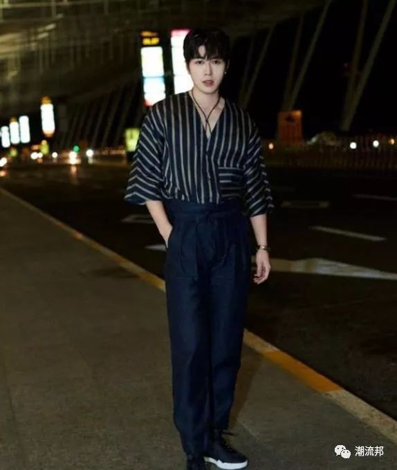 前段时间,陈学冬在机场出现,一些粉丝刚好碰到,就给他拍了一张照片。只见陈学冬上衣穿的是条纹衬衣,搭配上黑色的裤子和黑色运动鞋,穿搭风格小编只想用两个字的形容词来说明—英伦感。除此以外,陈学冬脖子上的鞋带搭配上V领衬衣,还真的感觉蛮好看的呢。