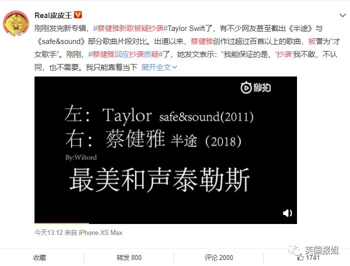 而对于自己的新歌抄袭霉霉这件事,她表示自己绝对没有,全部都来自于自己的灵感,还自嘲说自己这个中年老女人没办法去翻全世界的歌做对比,自己以后依然会用心进行创作。