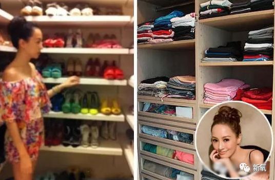 又是名媛又是明星的关颖只展示了衣帽间一角,除了五颜六色的鞋子,很多衣服都是折叠起来的,恩,这样可以节省空间,买更多的衣服···