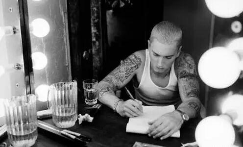 歌词永远是一个Rapper的灵魂。Eminem是一个琢磨单词韵脚的狂人。记得某个节目中他搬出来家里一口箱子,里面堆满他平时随手记录歌词灵感的纸片。