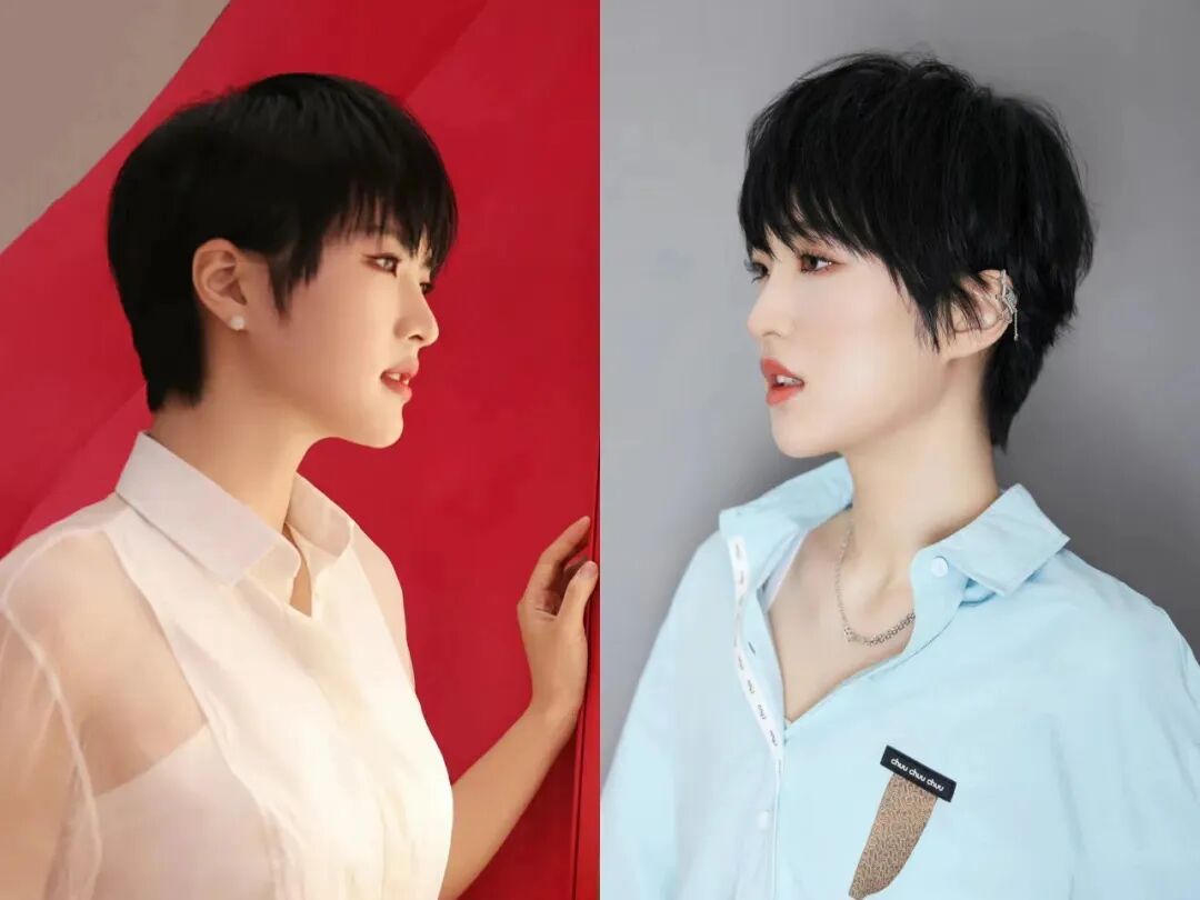 利落剪短的发型配上基础款淡色系穿搭,整个人气质更挺拔纯粹,比“公主”时期好太多。