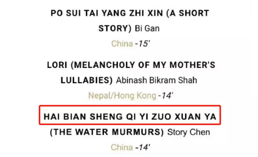 实际上,这部噱头十足的电影,只是一部短片,片长只有14分钟。在入围名单上,片名还是用拼音写的。
